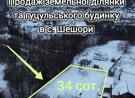 Продаж 34 сотки з гуцульським будинком в туристичному селі Шешори